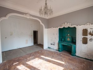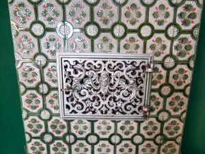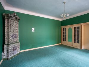 Pojďme se podívat do jednotlivých pokojů. Před mou návštěvou zde probíhal festival Designblok, řada pokojů byla tedy přebarvena, po rekonstrukci budou interiéry restaurovaný do původního stavu. Krásný je například tzv. zelený pokoj s kachlovými kamny.