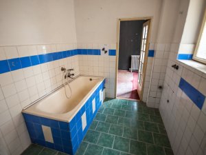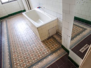 Na dnešní dobu už zejména nevyhovují koupelny, ty jsou ve většině případů společné a mimo hotelové pokoje. To se bude muset po rekonstrukci změnit. Najdeme v nich ale i zajímavé detaily, viz první fotografie a dlažba.