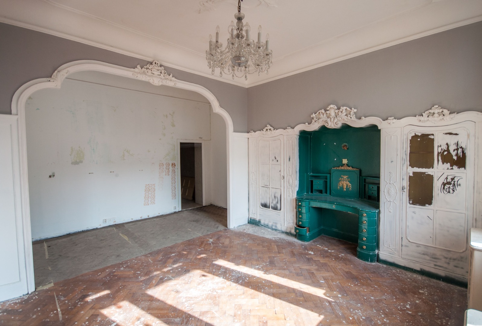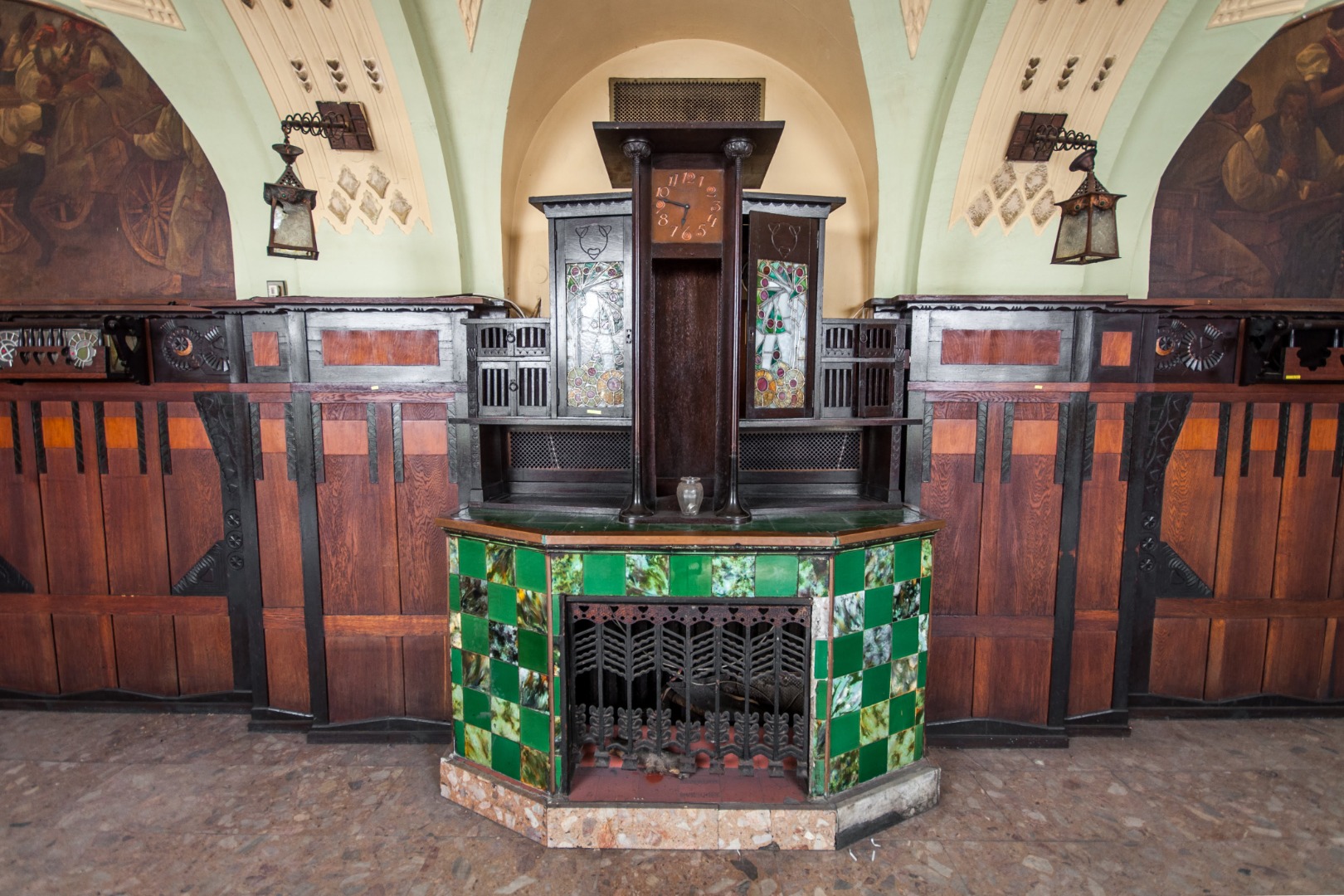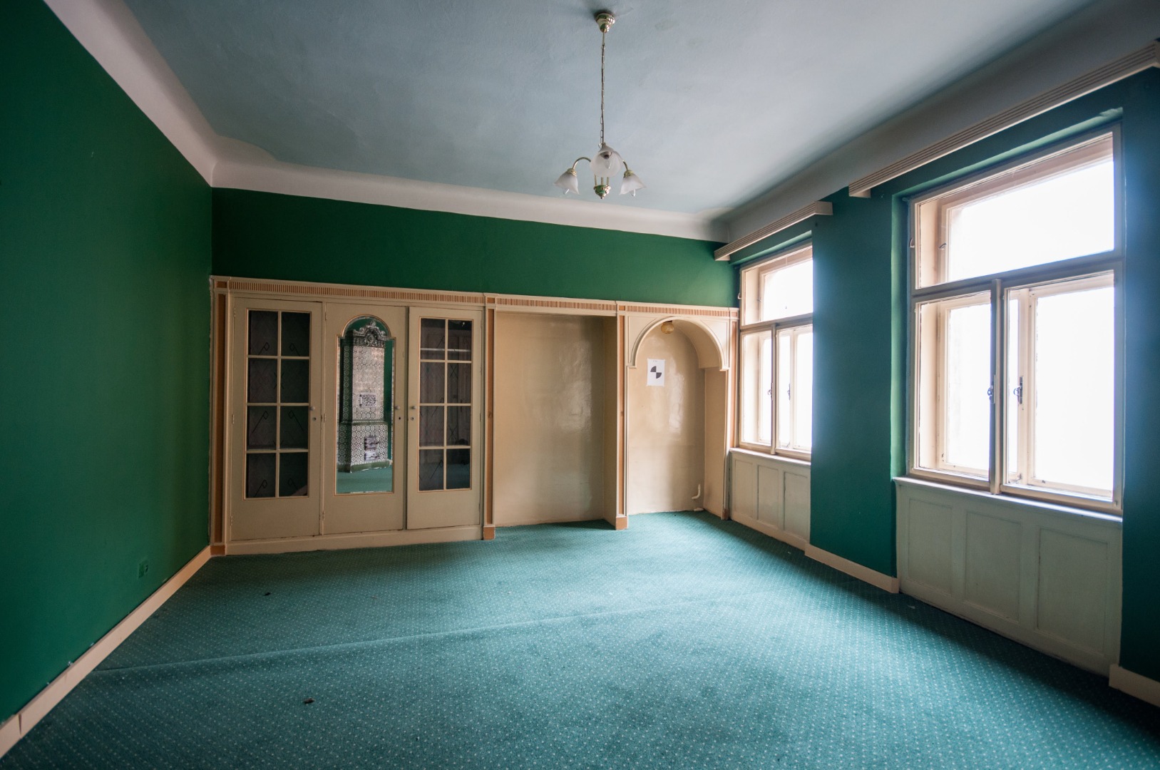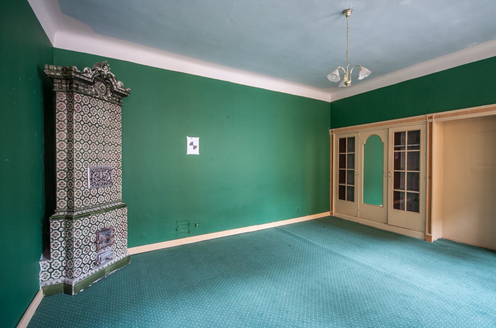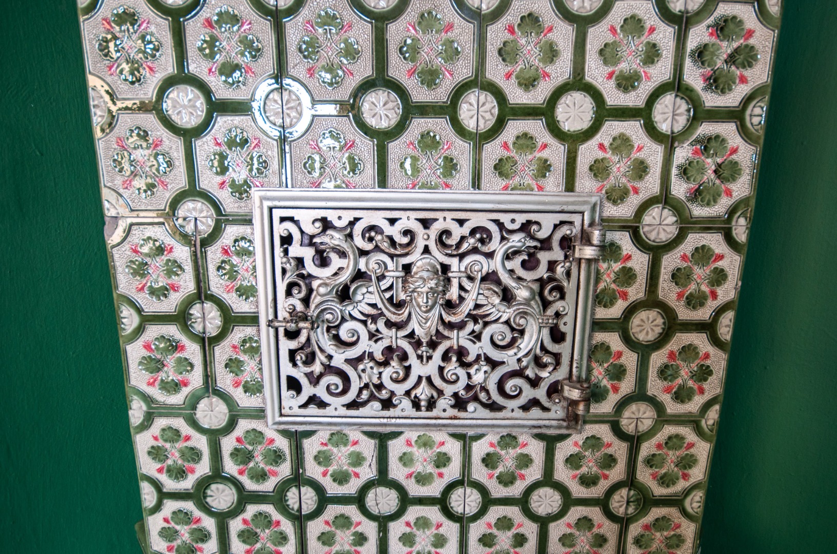 Pojďme se podívat do jednotlivých pokojů. Před mou návštěvou zde probíhal festival Designblok, řada pokojů byla tedy přebarvena, po rekonstrukci budou interiéry restaurovaný do původního stavu. Krásný je například tzv. zelený pokoj s kachlovými kamny.