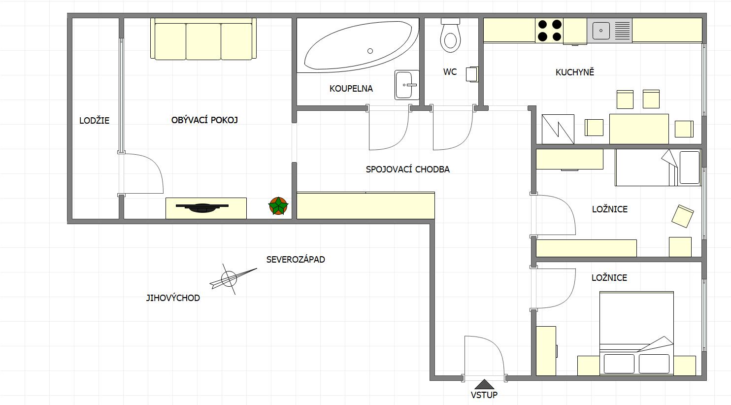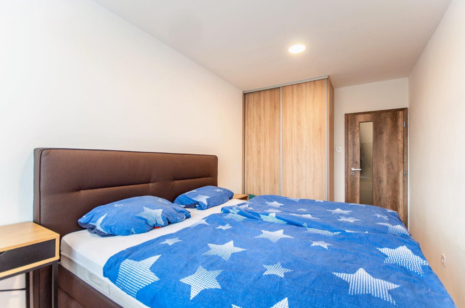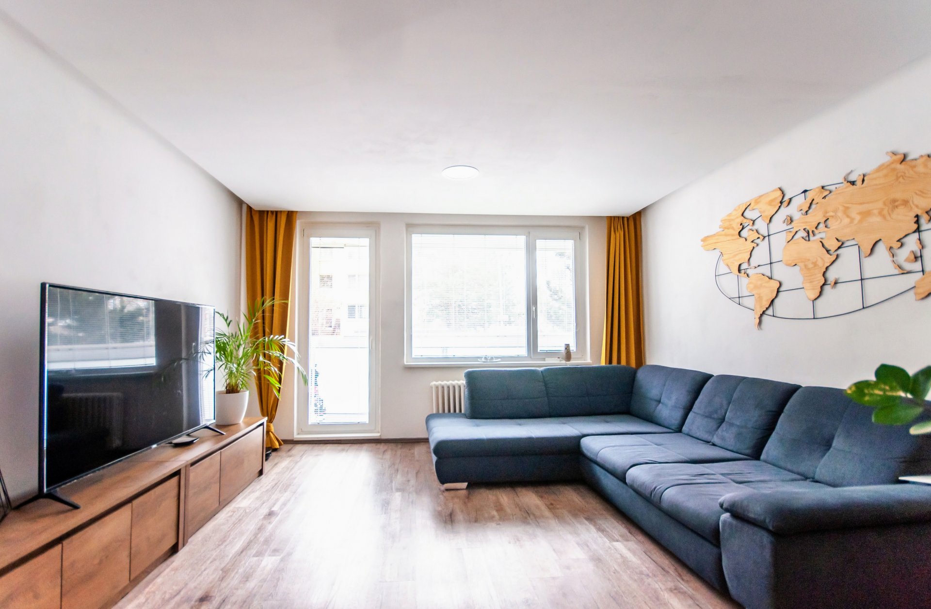 Byt se skládá z dvojice ložnic, kuchyně, obývacího pokoje, vstupní chodby, koupelny a samostatného WC. V roce 2018 prošel kompletní rekonstrukcí. K bytu také náleží sklep. V domě je dostupné vysokorychlostní kabelové připojení UPC. Parkování je možné v přilehlých ulicích, bez parkovacích zón.